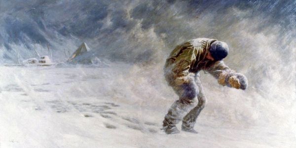 He awoke on 16 March 1912 and, leaving his shoes behind, walked out into the storm blowing outside.